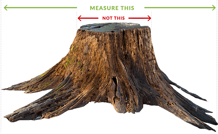 Have us visit your property to take a look at the stumps and exposed roots you'd like removed. If you don’t want an on-site inspection, fill out the contact form for a free quote. An inspection is the best way to guarantee neighboring root systems from nearby trees and other plant growth are not affected. Let us know the number of stumps you need removed and their sizes. Remember to measure the widest above ground portion including the raised roots. Our equipment needs at least 36" of clearance to make it through fences or any other obstacles.